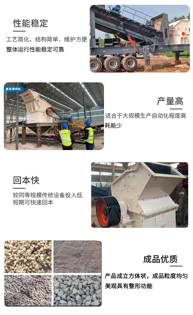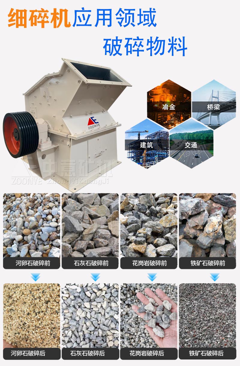鄭州中意在原細(xì)碎機(jī)的基礎(chǔ)上推出的升級版,生產(chǎn)效率更高,破碎比大,細(xì)碎效果好,用途更廣泛,鄭州中意生產(chǎn)的重型高效細(xì)碎機(jī),是實用可靠的細(xì)碎制砂機(jī)械,特別適用于對耐磨、耐火材料,石灰石、水泥熟料、石英砂、爐渣粉、各種礦石、混凝土骨料、瀝青骨料等多種硬脆物料的細(xì)碎與中碎,是一種高效,節(jié)能的碎石制砂設(shè)備,比傳統(tǒng)細(xì)碎機(jī)節(jié)能50%。