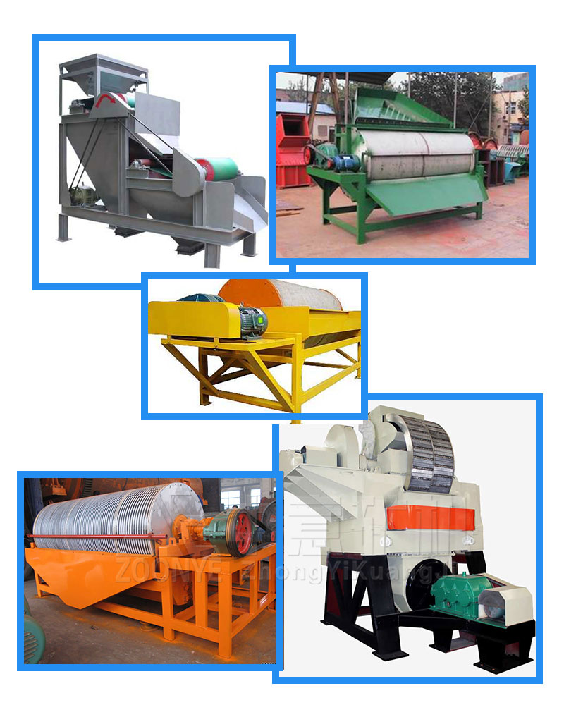磁選機(jī)是利用各種礦物比磁系數(shù)的不同,借助磁力和機(jī)械力將混合料中的磁性物質(zhì)分離開的設(shè)備。根據(jù)作業(yè)模式不同可分為干式磁選機(jī)和濕式磁選機(jī)。磁選機(jī)適用于粒徑大于3mm的磁鐵礦、磁黃鐵礦、焙燒礦、鈦鐵礦的鐵礦石選礦,還適用于煤炭、非金屬礦產(chǎn)、建筑材料和其他除鐵工作。