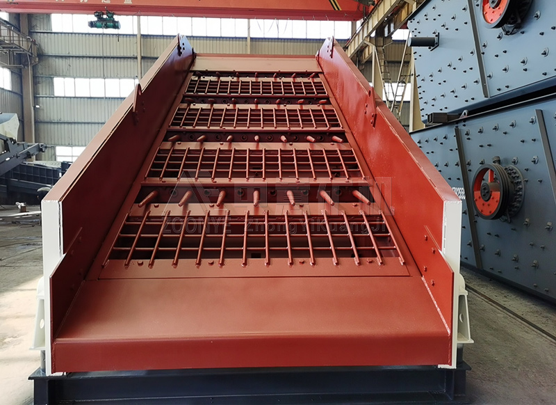 2、棒條式振動(dòng)篩機(jī)體:采用板材、型材焊接而成,其作用是將來(lái)料通過(guò)振動(dòng)輸送到破碎機(jī)。